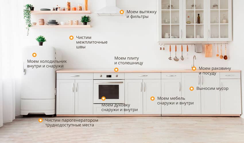 • Протираем кухонные фасады на всю высоту кухоннгого гарнитура (предварительно предоставив доступ)